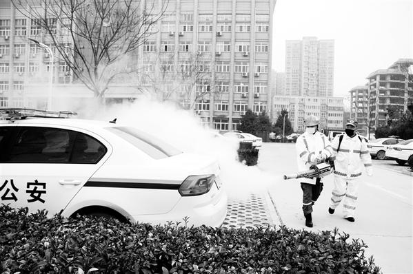 2月25日,河南蓝天救援周口志愿者携带消毒设备来到商水县公安局,为警营以及警用车辆、出警装备等免费消毒,以表达他们对勇敢战斗在疫情防控第一线上的公安民警敬重之情。据介绍,他们还在周口市公安机关28个警营场所进行免费消杀,累计出动志愿者60多人次,消杀面积约20万平方米。