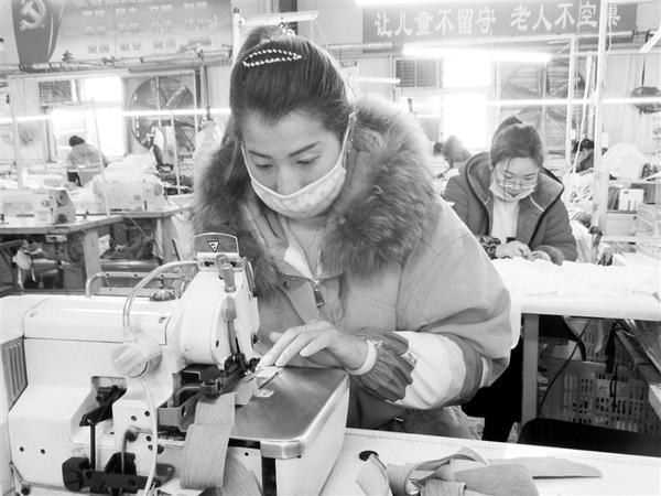 2月27日,在沈丘县妇联“巧媳妇工程”示范基地——佳依服饰有限公司就业扶贫车间,留守妇女在流水线上工作。 连日来,位于付井镇的佳依服饰有限公司在做好新冠肺炎疫情防控的同时,通过疫情防控知识和技能培训,有序推进复工复产,确保贫困人口持续稳定增收,不返贫。截至目前,该县171个扶贫车间,已全部开工复产,工人上岗率达90%。 谢辛凌 摄
