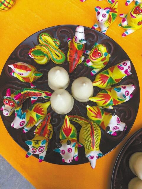 “这是一般生活中食用的馍,工序省略了许多。”在李敬伟介绍的同时,记者隔着玻璃看到工人们正忙着将准备好的面切成均匀的小块,然后制作成宝葫芦形状。再向前走,有的工人正在制作十二生肖馍:小巧玲珑的老鼠、憨态可掬的小猪、机灵可爱的小猴……还有花鸟鱼虫等(如图),惟妙惟肖,让人一看就喜欢上了。