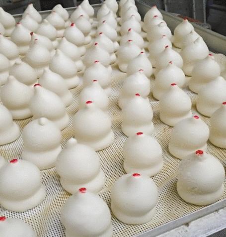 低温细长、延时发酵是顾家馍津甜香醇的关键,面粉在缓慢发酵过程中,部分转化成糖和人体必不可少的碳水化合物,醒发时间6至8小时为佳,这个时间是商品化馒头制造商做不到的,整个过程是作品质量高低的关键。将醒发好的顾家馍沸水上笼,蒸制过程中多次掀盖矫正手扶,使之不歪不扭。20分钟后,憨态可掬的“生灵”宛若出水芙蓉,艳惊全场。