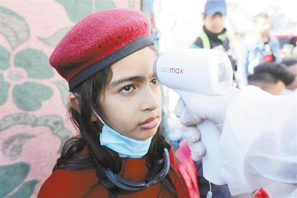 3月2日,在伊拉克巴格达解放广场,一名女孩接受体温检测。伊拉克卫生部2日报告该国新冠病毒感染病例增加到26例。