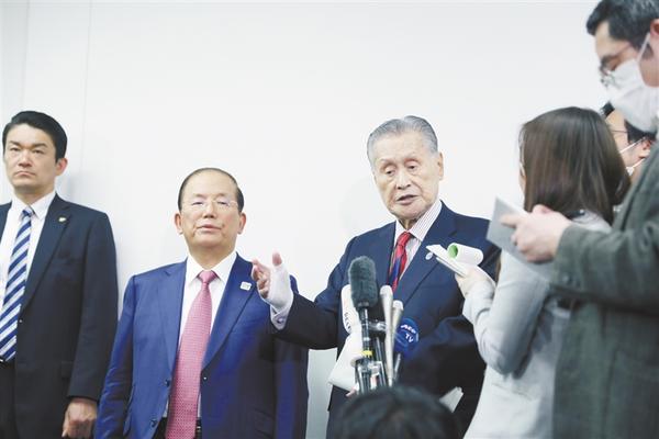 3月4日,东京奥组委主席森喜朗(左三)回答记者提问。当日,东京奥组委主席森喜朗与东京奥组委首席执行官武藤敏郎在结束与国际奥委会执委会的电视会议后,在东京奥组委总部会见记者。森喜朗表示,东京奥组委当天晚上与国际奥委会执委会的电视会议中,没有提到取消或者推迟奥运会的事情,他再次重申奥运会将在7月24日准时开幕。新华社记者 杜潇逸 摄
