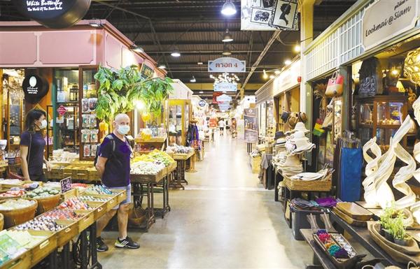 3月7日,戴口罩的游客在泰国曼谷摩天轮夜市参观。泰国总理府副发言人黛素丽近日表示,新冠疫情直接导致泰国导游失业、游客数量急剧下滑。根据泰国旅游局发布的数字显示,今年1月至4月期间仅中国游客数量的锐减就将给泰国造成预计30.5亿美元的经济损失。新华社发