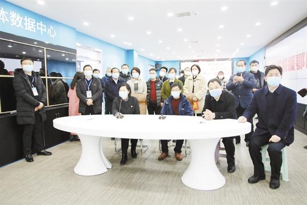 本报讯(记者 徐松 文/图) 2月28日下午,郸城县委书记罗文阁、县长李全林等县四个班子领导通过移动云视讯系统在县全民健康信息服务中心视频连线慰问县援鄂医疗队队员,并看望医疗队队员家属(如图)。