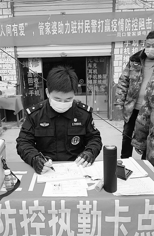 庚子新春,对于崔继伟来说有特殊的意义。新冠肺炎疫情发生以来,他在疫情防控一线卡点值守、 摸排人员,守护人民群众的健康安全(如图)。