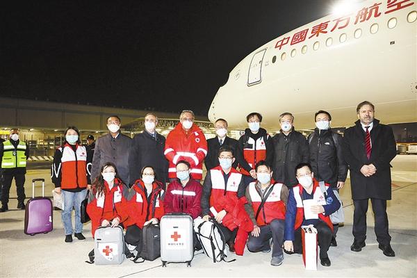 当地时间12日晚,由国家卫生健康委员会和中国红十字会共同组建的抗疫医疗专家组一行9人抵达意大利首都罗马,并带来部分中方捐助的医疗物资。