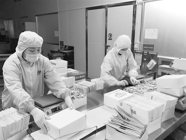 一手抓疫情防控,一手抓复工复产。当前,沈丘县积极协调解决企业生产经营中面临的困难和问题,为企业做好相关服务保障工作,指导帮助企业有序生产,为稳定经济社会发展大局提供有力支撑。图为该县金丝猴糖厂21条生产线已全面复工,工人正在称重装糖。黄海涛 摄