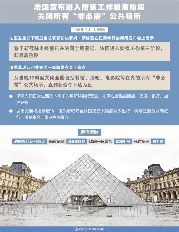 法国宣布进入防疫工作最高阶段 关闭所有“非必须”公共场所