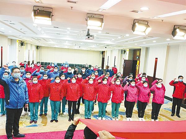 本报讯 (记者 郭坤 实习生 王飞宇) “我志愿加入中国共产党,拥护党的纲领,遵守党的章程……”3月17日上午10时许,庄严的中国共产党入党誓词响彻湖北省发展与改革委员会培训中心四楼会议室。河南省第11批援鄂医疗队临时党总支在这里举行了一场简短而庄重的入党宣誓仪式,包括周口医疗队13人在内的33名同志火线入党。