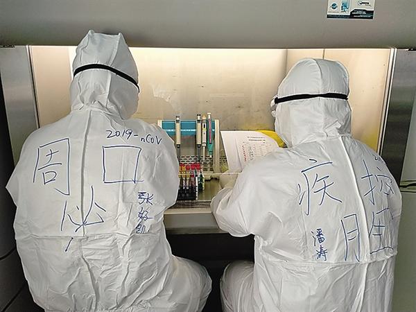 为保障随时出具检测结果,市疾控中心实验室24小时运转,组建起17名检验人员轮班不间断检测样本。自1月21日接到首例送检样本以来,该中心检验区的灯光日夜不息,检验设备昼夜不停。不论白天黑夜,检验人员随时接收送检样品,仔细核对送检信息,提取核酸,进行定量处理,开展基因扩增,研判分析结果,及时准确出具报告。检测完成后,留检样品-70℃以下保存,对产生的废弃物高压灭菌、环境消毒,确保生物安全。每轮实验下来至少8个小时以上,检验人员零距离接触病毒,每天都要穿戴上两层防护服、N95口罩、护目镜、乳胶手套、防护靴套等全副武装,“高度集中、与世隔绝”。本该工作14天就应该隔离休息的他们,由于工作量大,检验人员相对不足,就毫无怨言地主动请战,放弃隔离观察,连续作战,一直坚持吃住工作在单位一个多月!