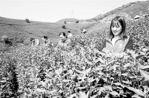 3月19日,长兴县和平镇团委组织的志愿者们在方家庄村茶山与茶农一起采摘春茶。近期,随着气温的升高,浙江省长兴县和平镇种植的春茶陆续进入采摘期。新华社发