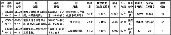 拍卖报价时间为:2020年4月10日10时(地块编号:SS2020-16)。拍卖网址:周口公共资源交易系统(网址:http://www.zkggzyjy.gov.cn)。2020年4月10日10时10分(地块编号:SS2020-17)。拍卖网址:周口公共资源交易系统(网址:http://www.zkggzyjy.gov.cn)。2020年4月10日10时20分(地块编号:SS2020-18)。拍卖网址:周口公共资源交易系统(网址:http://www.zkggzyjy.gov.cn)。