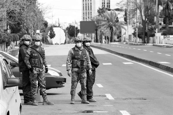 3月21日,在约旦首都安曼,军人在街道上执勤。当天是约旦强制民众居家隔离第一天。约旦政府20日宣布,从21日起把居家隔离升级为强制措施,以应对新冠肺炎疫情。截至20日,约旦累计新冠肺炎确诊病例69例,治愈1例。新华社发