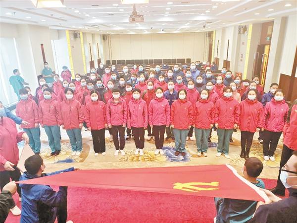 本报讯 (记者 徐松 文/图) 3月17日、19日,郸城县援鄂队员徐峰和谢中亚、丁锟先后在湖北省抗疫一线宣誓,火线入党(如图)。