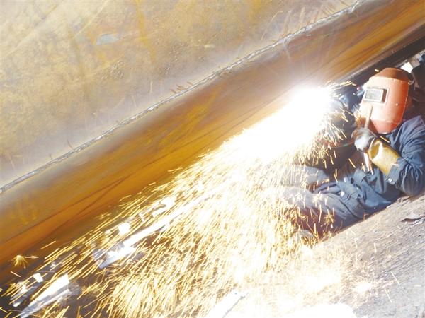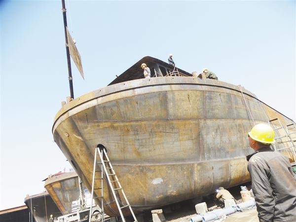 3月28日,沈丘县周营镇刘集村一处船舶修造厂内,露天造船车间平台上机器轰鸣、焊花四溅,工人正忙着打造订单集装箱货运船。该造船厂依河而建,如今已成为当地的“致富工厂”。复工复产以来,该造船厂在抓好疫情防控的同时,组织“船老大”科学有序返岗复产,目前已安置160余名农民工就业,助力脱贫攻坚,促进乡村振兴。谢辛凌 摄