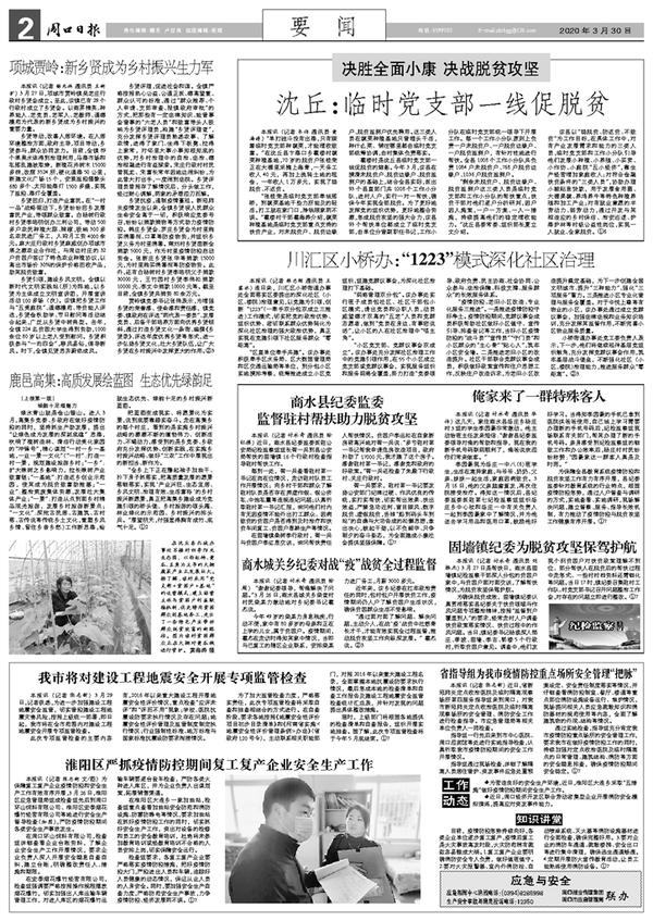本报讯 (记者 张志新) 近日,省新冠肺炎定点收治医院及临时隔离观察场所第四服务指导组来到周口,对我市新冠肺炎定点收治医院及临时隔离观察场所的安全管理、消防安全工作进行检查指导。市应急管理局等相关单位负责人一同检查。