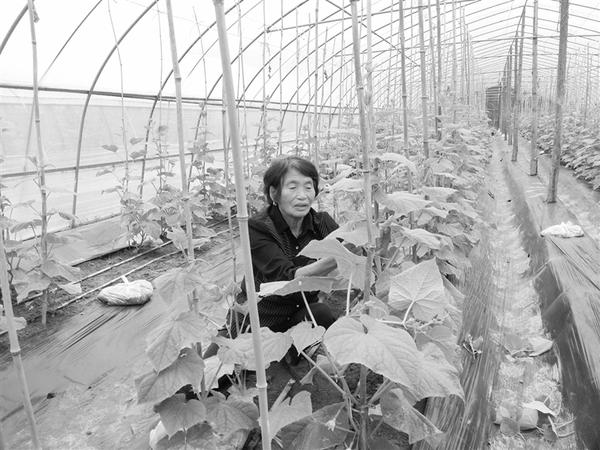 在沈丘县北城办事处苏楼村四季阳光生态园,以西红柿、黄瓜、豆角为主导的大棚蔬菜产业正发展壮大。据了解,该村采用“党支部+贫困户+基地”的运营模式,建立经营主体与贫困户利益联接机制,优先聘用贫困群众到基地务工,走出了一条特色产业带动群众脱贫致富的新路径。图为该村贫困群众正在大棚对黄瓜秧进行管护。黄海涛 摄