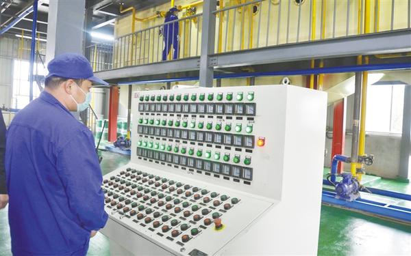 3月27日,位于商水县产业集聚区的河南永达生物科技有限公司技术人员查看智能设备运行情况。该公司集农产品开发、粮食深加工、销售为一体,是河南省唯一一家非转基因低温食用豆片生产厂家,拥有15项国家技术专利,主要生产非转基因低温食用豆片、大豆异黄酮等系列绿色农产品,产品远销韩国、日本、意大利、法国等国家。记者 付永奇 摄