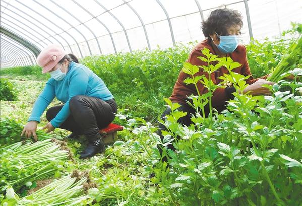 昨日,在沈丘县周营镇豫东惠农家庭农场大棚蔬菜种植基地,村民正忙着采收订单生态芹菜。近期来,沈丘县在抓好疫情防控的同时,出台系列扶持政策,促进现代设施农业有序恢复生产,带动当地贫困村民就近务工增收致富。