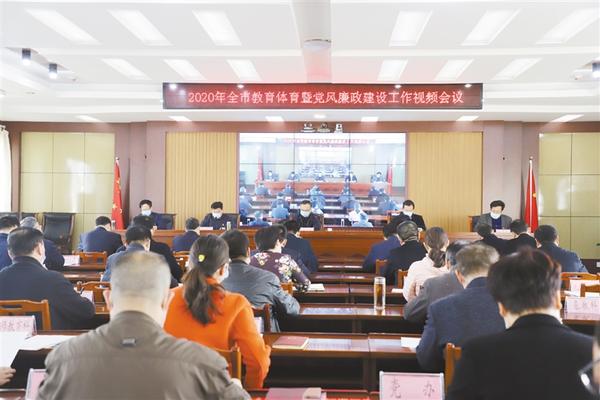 本报讯 (记者 张洪涛 通讯员 万志强 赵丛娇) 3月20日上午,市教体局召开2020年全市教育体育暨党风廉政建设工作视频会议,全面总结2019年工作,安排部署2020年的重点工作,做到疫情防控和工作推进两手抓、两不误,确保2020年全市教育体育工作实现新突破、再上新台阶。市政府副秘书长朱化礼及市教体局全体领导班子成员出席会议。市教体局党组书记张建梁讲话,局长丁建清主持会议。