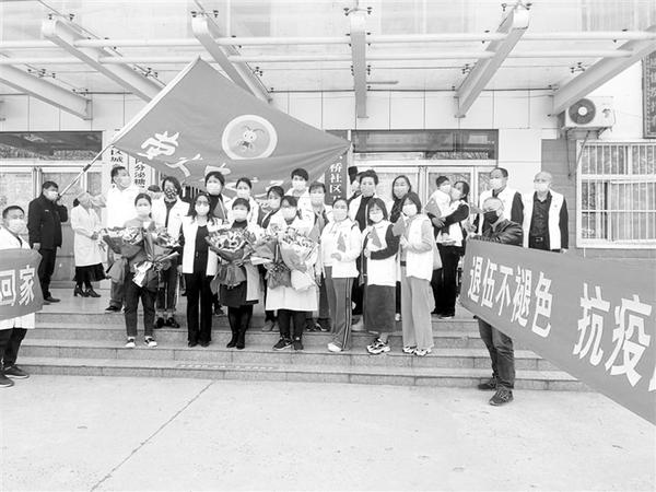 4月7日上午,萤火虫志愿者、川汇区小桥社区卫生服务中心医务人员霍红梅和王运圆满完成抗疫任务返回工作岗位。当天上午,在小桥社区卫生服务中心门口,萤火虫志愿者手拿鲜花欢迎最美白衣天使回归。