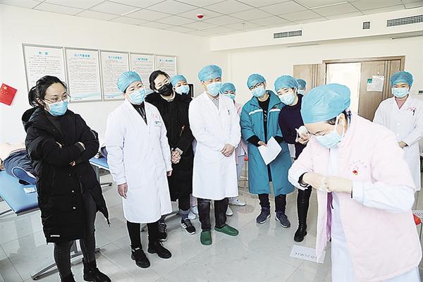 一夜之间吊装4间箱式板房,建成规范的预检分诊,加紧改建活动板房34间,建成标准化发热门诊;连夜将感染性疾病科原有病人分流到其他医院,设置成隔离病区,加紧建设负压病房6间,用于收治新冠肺炎患者。同时,医院迅速集结的139名医生、238名护士组成应急疫情防控“军团”,立即投入抗击新冠肺炎的战斗中。