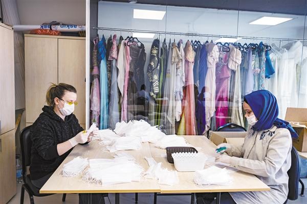 4月8日,在土耳其伊斯坦布尔,志愿者利用缝纫服装的设备生产口罩。土耳其卫生部长科贾8日说,该国当天新增新冠确诊病例4117例,累计确诊38226例;新增死亡病例87例,累计死亡812例;累计治愈1846例。新华社发