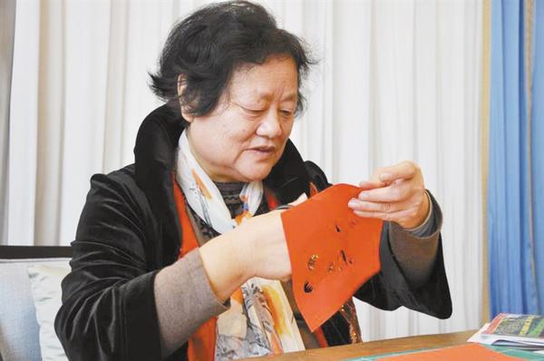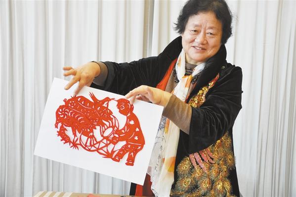 4月11日,王春梅制作展示剪纸作品。王春梅是我市非遗传承人,她自幼喜欢艺术,剪纸、秸秆画、布贴画等样样精通,作品多次获国内大奖。