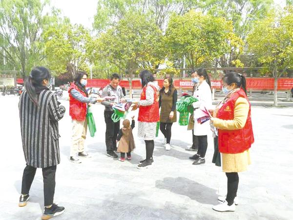 本报讯 (记者 韦伟 通讯员 谢辛凌 文/图) 在全民国家安全教育日来临之际,为增强全民国家安全意识,提高防范和抵御安全风险能力,普及国家安全知识,4月14日,沈丘县妇联积极响应中央、省、市、县国安办号召,组织20多名巾帼志愿者,分成6个宣传小分队,按照宣传区域划分,到城区购物超市、公园、“三公开”广场等地,向过往群众散发《国家安全法律法规汇编》《全民国家安全教育倡议书》《全民国家安全日宣传单》等相关法律法规宣传资料800余份、宣传袋320个(如图)。