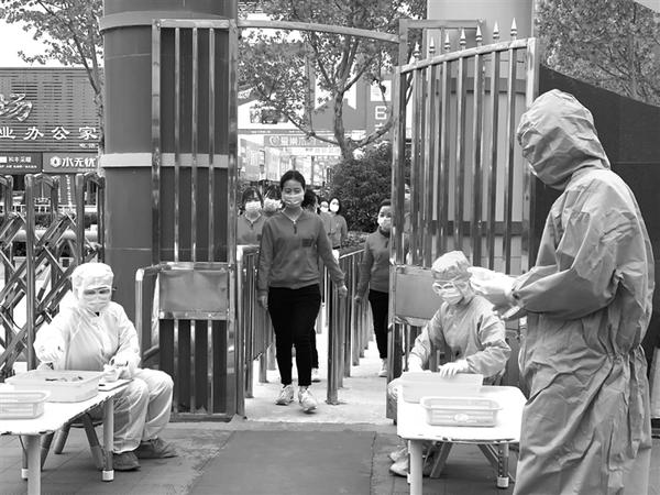 当日,该园严格按照“开学后防控措施”流程,对幼儿分时段错峰入园、脚底消毒、测量体温、家园交接、接送孩子入班、班级二次晨检、错峰有序离园及应急处理等预案内容进行了演练。记者 刘华志 通讯员 张雪勤 摄