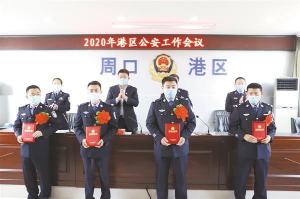 会议由副局长周桂莲主持。会上,副局长段彦齐宣读了周口港区公安分局关于表彰2019年度先进个人的通报;局长何学民回顾总结了2019年公安工作,对当前面临的形势和挑战进行了分析研判,全面部署了2020年公安工作。