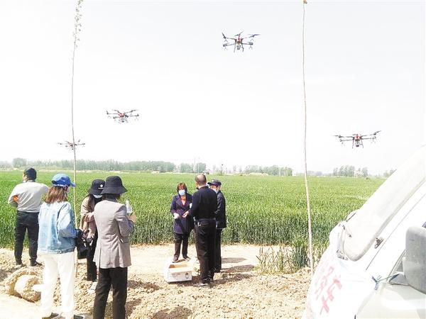 眼下,小麦进入抽穗期,是小麦丰收丰产的关键时期,为切实做好小麦抽穗期病虫害防治工作,4月15日,鹿邑县谷阳办事处张辛行政村及时与农机专业合作社联系,组织多架智能无人机,统一对该村近千余亩麦田喷施苯甲丙环唑和戊唑醇,以增强小麦条锈病、赤霉病、蚜虫、麦蜘蛛等病虫害的防控能力,确保今年的夏粮丰产丰收。