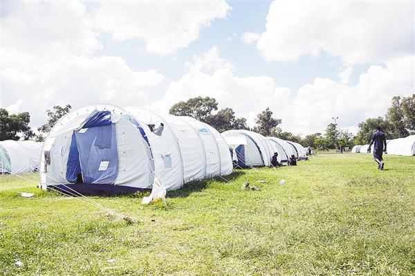 这是4月15日在南非比勒陀利亚拍摄的政府为无家可归者临时搭建的帐篷,可以容纳300人。为更好地控制疫情,南非政府为无家可归者搭建了临时的“家”,并提供食物、饮用水等基本生活物资,直到封城结束。新华社发