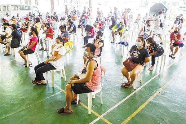 4月17日,在菲律宾首都马尼拉的一个菜市场,戴着口罩的人们坐着排队,等候购物并保持社交距离。菲律宾卫生部16日通报,该国累计新冠确诊病例5660例,累计死亡362例,累计治愈435例。新华社发
