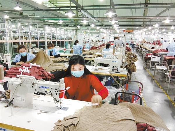 随着疫情得到缓解,我市按照党中央、国务院的决策部署,出台了一系列政策措施,全力支持和组织推动各类生产企业有序规范复工复产。截至目前,全市1309家规模以上工业企业已复工1293家,复工率98.8%,其中外贸企业复工率91%、外资企业复工率80.4%、外经企业复工率80%;全市10个产业集聚区558家规模以上工业企业复工复产率97.7%。图为河南阿尔本制衣有限公司的生产车间。