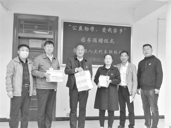为不断丰富农村少年儿童文化生活,促进农村少年儿童健康成长,4月20日上午,淮阳区鲁台镇人大代表联络站组织人大代表开展了“公益助学、爱我家乡”捐赠图书活动,向鲁台镇27所中小学捐赠了《羲皇故都》《人生故事》等书籍。图为捐赠仪式现场。记者 刘俊涛 摄