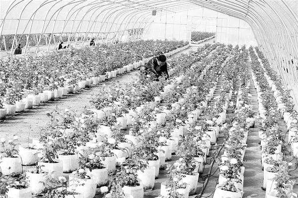 在沈丘县槐店镇泰安路花卉繁育基地,经营者正在打理盆栽月季。近年来,该县引导农民调整种植结构,大力发展以花卉、观赏植物为主的“盆栽经济”。日前,各类盆栽植物迎来销售旺季,成为群众增收的特色产业。王怀霞 摄