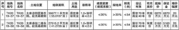 拍卖报价时间为:TK2019-57地块:2020年5月15日10时,TK2019-58地块:2020年5月15日10时10分;拍卖网址:周口公共资源交易系统(网址:http://www.zkggzyjy.gov.cn)。