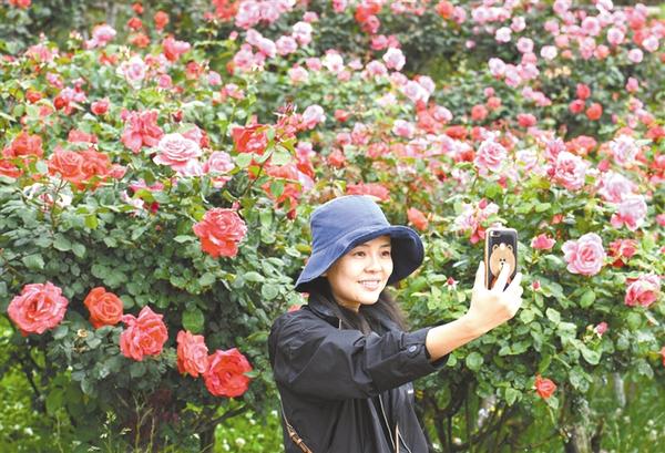 4月30日,游客在云南省曲靖市富源县多乐原景区拍照。