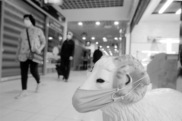 4月29日,在罗马尼亚首都布加勒斯特,一家农贸市场里很多商店关门,市民均佩戴口罩购物。