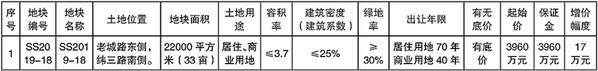 挂牌报价时间为:SS2019-18地块:2020年5月21日10时至2020年6月4日10时。
