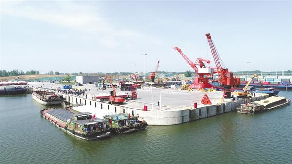 复工复产以来,周口中心港码头加大马力,全速运转,为地方经济建设发展提供强有力的运输保障。图为周口中心港码头作业现场一派繁忙景象。记者 宋风 摄