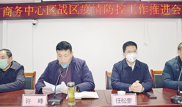 2020年1月24日(除夕),县商务中心区党组书记许峰召开党组扩大会议,传达县委、县政府疫情防控决策部署,宣布成立疫情防控领导小组、督导组及停止春节假期、全员上岗、鏖战新冠肺炎疫情的决定,商务中心区党组班子成员、各村党支部书记会上立下军令状,与时间竞速,扛牢疫情防控责任,用高效执行力确保县委、县政府疫情防控决策部署的贯彻落实。