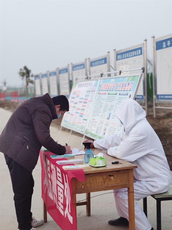 2月下旬,随着周口市疫情防控获得进一步成效,复工复产迫在眉睫。虽然疫情还未退去,但一手抓防控、一手抓复工的责任不敢懈怠。沙颍河项目作为河南省重点工程项目,责无旁贷成为周口市首批复工项目。早在2月初,项目部就编制了《疫情防控暨复工方案》及《疫情防控专项应急预案》,提出“分步、分区”复工总体思路,紧急筹备各项防疫物资。在复工复产申请得以获批后,迅速“点对点”组织人员跑步进场、加大二维码技术智慧防疫、严格落实“测温、消毒、隔离、分餐”等防疫措施,对库存施工材料进行全面盘点,拉单列表式记录,召开模板受疫情影响专题会,制定保供措施,对项目防疫复工安全生产条件逐项自查自纠。前期准备时间短、任务重,在上级领导亲临指挥、各方人员团结协作、施工现场有力把控下,仅用3天时间,沙颍河项目于2月24日下午正式开启子项工程郑埠口复线船闸土方作业施工,率先打响复工复产“第一枪”。中交二航人用实际行动跑出了复工复产“加速度”。