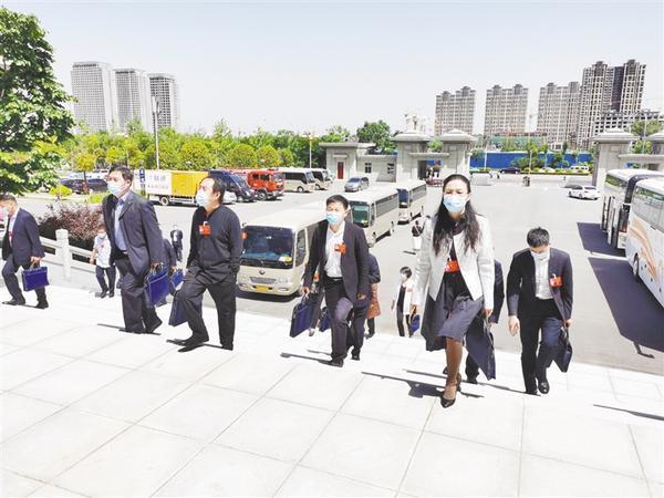 5月12日上午,市四届人大五次会议开幕前,来自全市各行各业、各条战线的市人大代表、列席会议的市政协委员精神饱满、步伐坚定地走入会场。记者 孙安平 摄