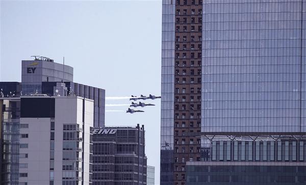 5月12日,美国海军“蓝天使”特技飞行表演队飞过芝加哥上空。