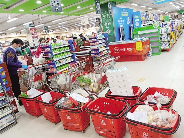 在疫情吃紧时期,在中心城区万果园小时代超市、果果茂超市、观澜国际店等门店,记者看到,超市内,粮油米面、蔬菜水果、肉蛋奶等商品一应俱全,不少市民正在有条不紊、细致挑选。在万果园观澜国际店,新鲜的草莓受到不少市民的青睐。“这草莓不错,你看上面的叶子很新鲜,而且价格也不贵。”市民王女士边说边往购物篮里放了两盒草莓。在干副调料区域,几名工作人员正在上货,该店店长郁彭超介绍:“最近一些调料、酱料特别畅销,几乎刚上货就有市民购买,工作人员一直在不断地上货。还有生鲜商品、休闲商品,超市里的货量都非常充足,市民均可放心购买。”