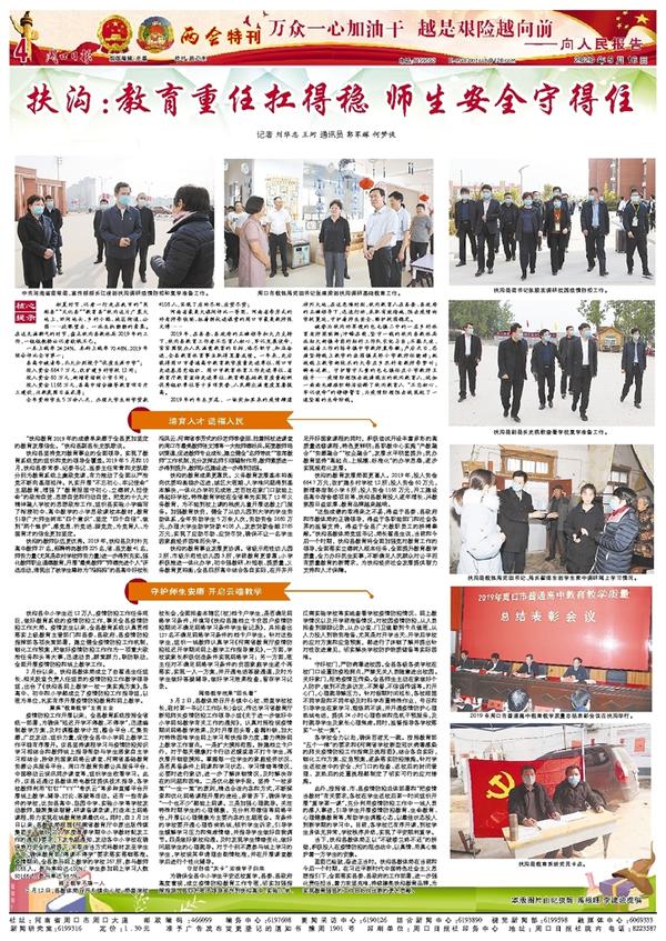 为确保全县中小学生平安返校复学,县委、县政府高度重视,成立疫情防控教育工作专班,切实加强指挥指导。县四大班子领导多次到扶沟高中、实验小学、江南实验学校等实地查看学校疫情防控情况、网上教学情况以及开学前准备情况。对校园疫情防控,从人员排查到跟踪记录,从办公室、门卫值勤到卡点值班,从人力投入到物资准备,尤其是对开学当天、开学后学校的应对方案和应急预案,都进行了详细了解并提出针对性改进意见,切实解决学校防护物质储备等实际困难。