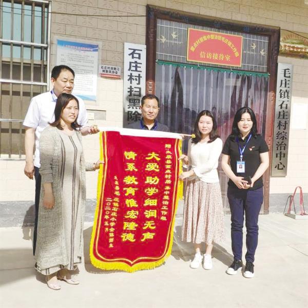 太康县纪委常委、县重点村居集中整治驻毛庄镇石庄村工作组组长万慧勤,多方协调,为石庄小学争取到60套新桌凳,并筹措资金硬化了校园操场,翻修了学校大门和围墙。5月13日,石庄小学校长蔡伟和教师代表把锦旗送到万慧勤手中表达谢意。 记者 马治卫 通讯员 姜大超 摄