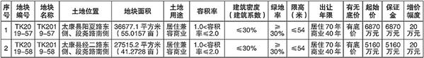 拍卖报价时间为:TK2019-57地块: 2020年6月10日11时;TK2019-58地块: 2020年6月10日11时10分。拍卖网址:周口公共资源交易系统(网址:http://www.zkggzyjy.gov.cn)。